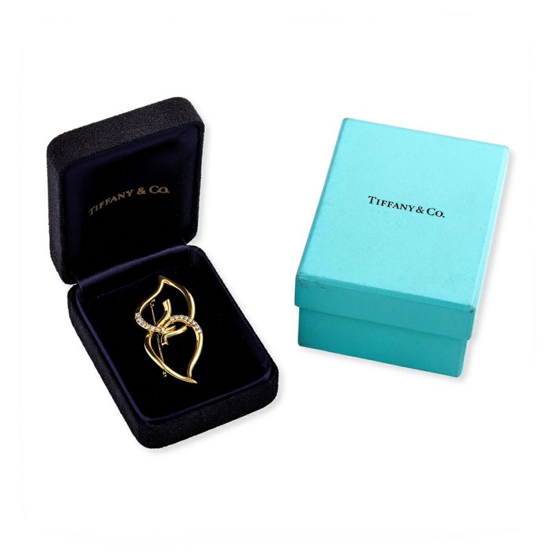 ヴィンテージ ティファニー ダイヤモンド リーフ ブローチ C.1987