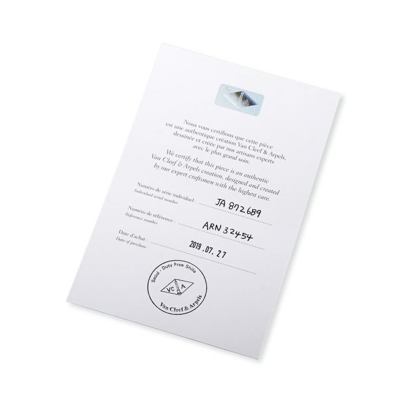 2019年にヴァンクリーフが発行したブランド証明書付 シリアルナンバー:JA872689