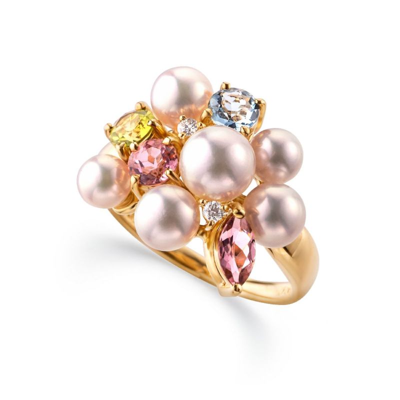 メインストーン:アコヤパール(約3.4-6mm) サイドストーン:ダイヤモンド(0.03ct), ピンク色石, 淡青色石, 淡緑色石