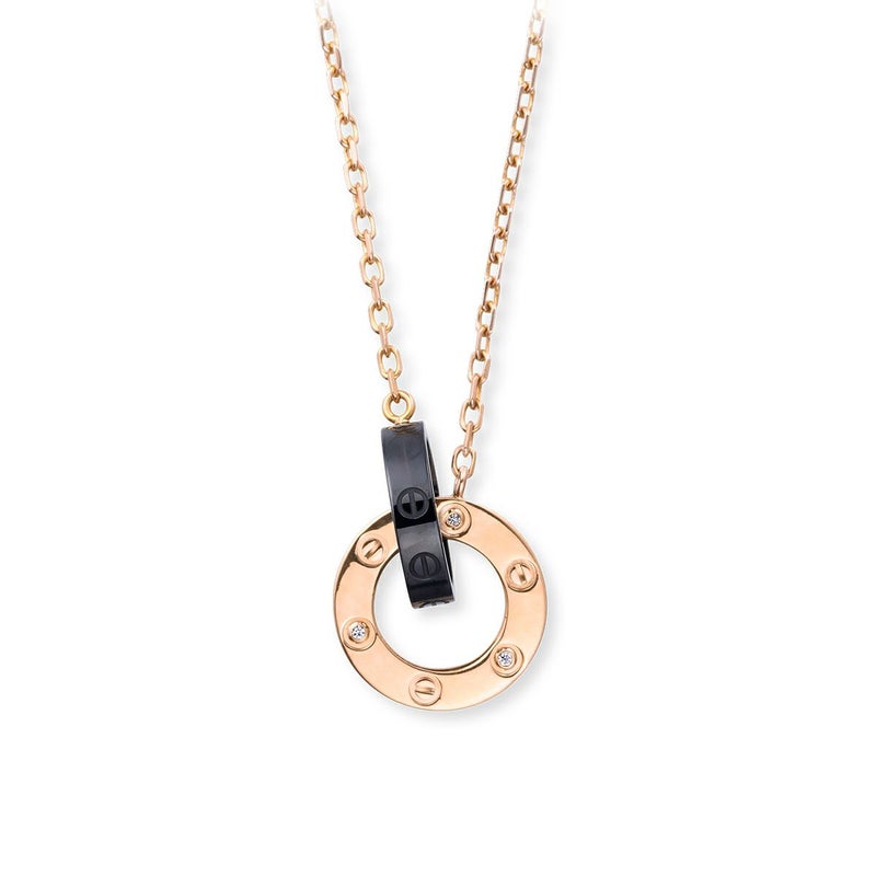 モチーフサイズ:直径 約12.9mm(ピンクゴールド), 約11.5mm x 約9.6mm(ブラックセラミック) ネックレス全長:約41cm(アジャスターカンで約37.8cmに調節可能)