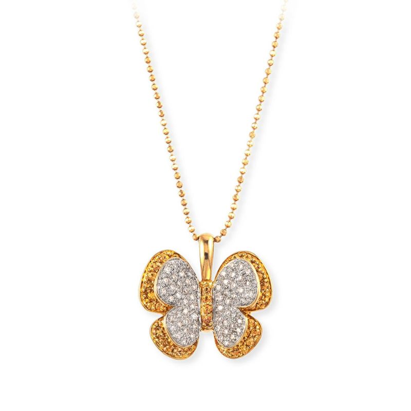 K18 ダイヤモンド イエローサファイア バタフライ ネックレス