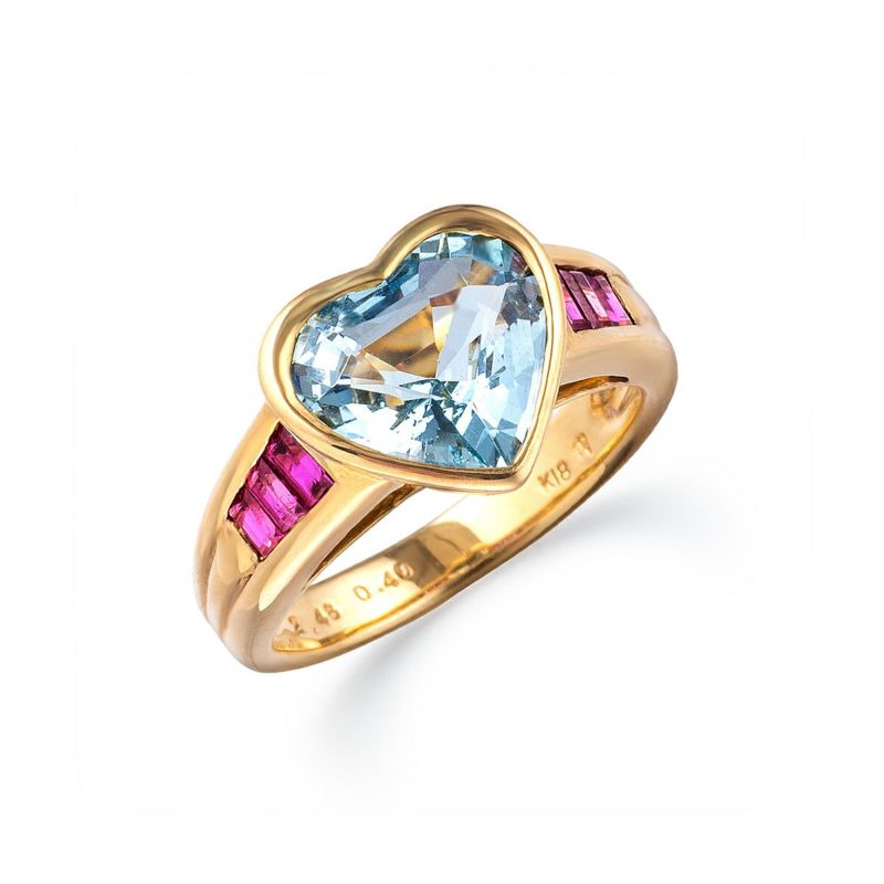 メインストーン:アクアマリン(2.48ct ハート「シェイプ) サイドストーン:ルビー(0.40ct)
