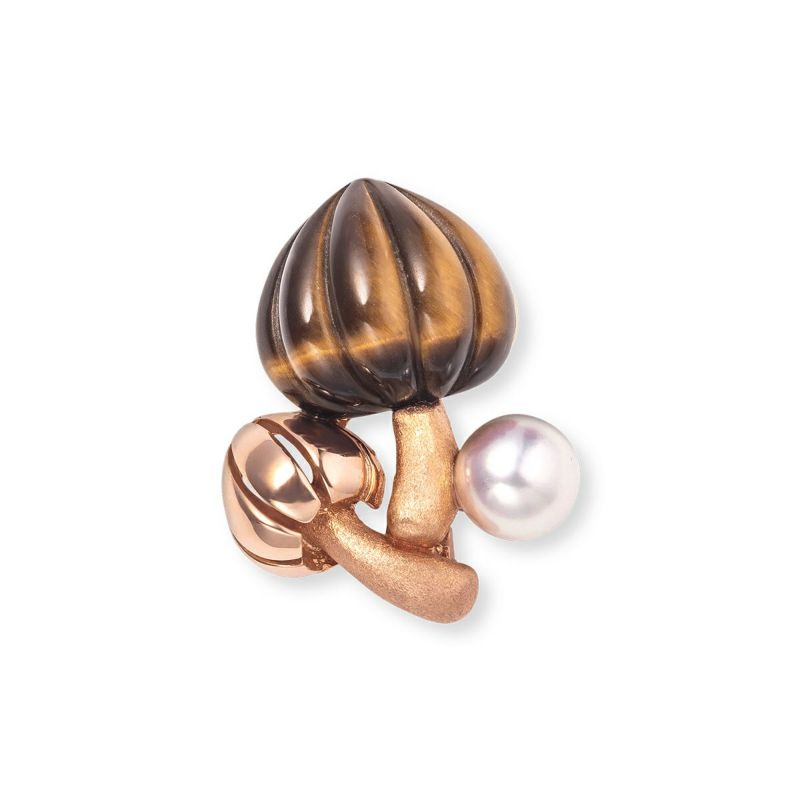 ミキモト タイガーアイ キノコ ピンブローチ/ペンダントトップ