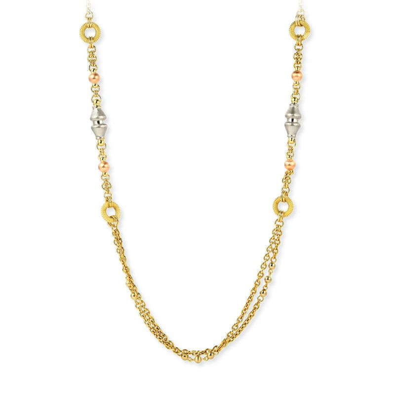 K18 イタリア製 スリーカラーゴールド ロングネックレス