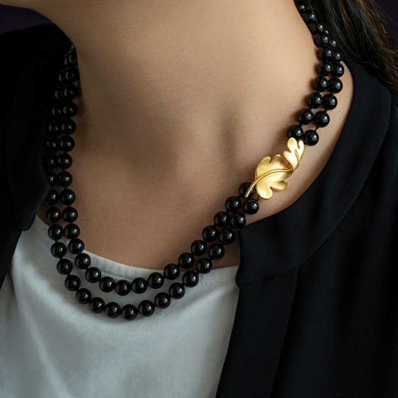 ヴィンテージ ティファニー オニキス リーフ ネックレス