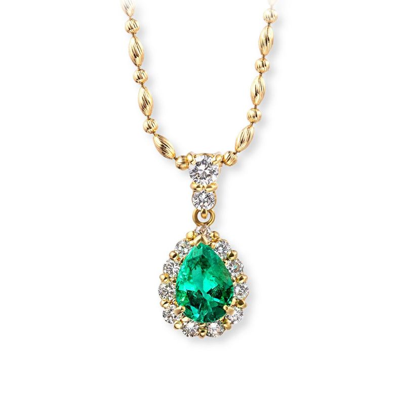 メインストーン:エメラルド(1.04ct ペアシェイプ) サイドストーン:ダイヤモンド(0.46ct)