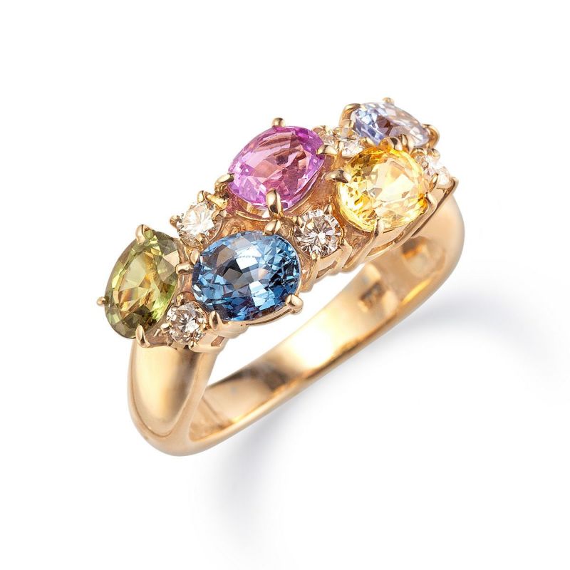 K18 マルチカラー サファイア リング