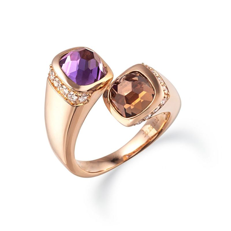 メインストーン:アメジスト、スモーキークォーツ(計3.02ct) サイドストーン:ダイヤモンド(0.29ct)