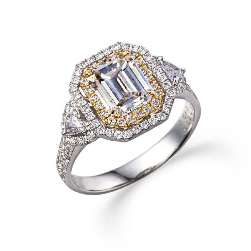 メインストーン:ダイヤモンド(1.583ct エメラルドカット/ M, SI1) サイドストーン:ダイヤモンド(0.76ct)※うちトリリアントカットの脇石2石が0.54ct