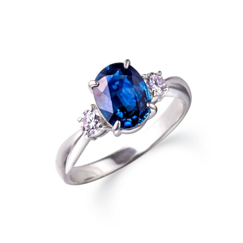 メインストーン:サファイア(1.62ct オーバルシェイプ) サイドストーン:ダイヤモンド(0.20ct)