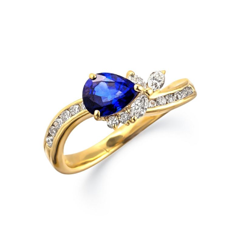 メインストーン:サファイア(0.940ct ペアシェイプカット) サイドストーン:ダイヤモンド(0.35ct)