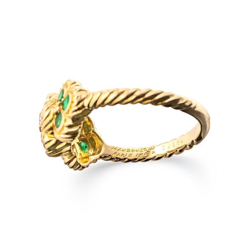 ヴィンテージ モーブッサン ダイヤモンド エメラルド フラワー リング