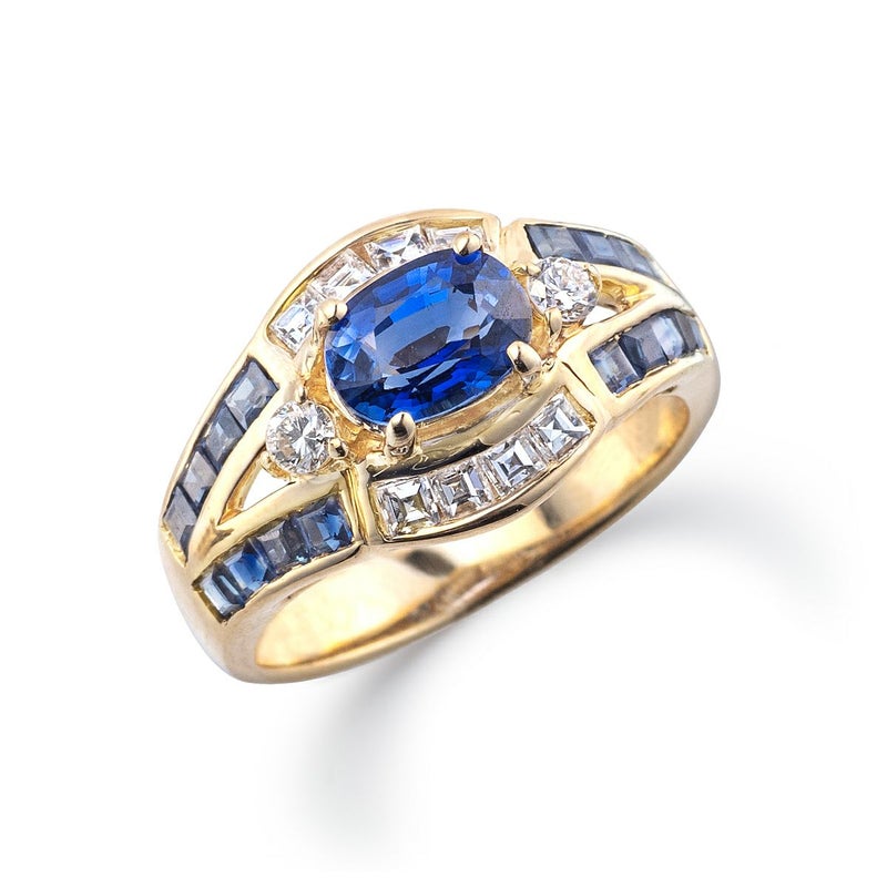 メインストーン:サファイア(1.03ct オーバルカット) サイドストーン:サファイア(0.25ct)/ダイヤモンド(0.89ct)