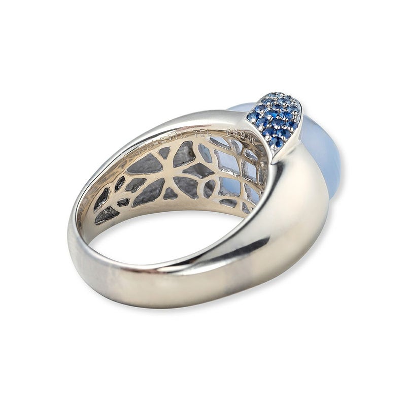 メインストーン:ブルーカルセドニー 9.80ct(オーバルカボションカット) サイドストーン:サファイア