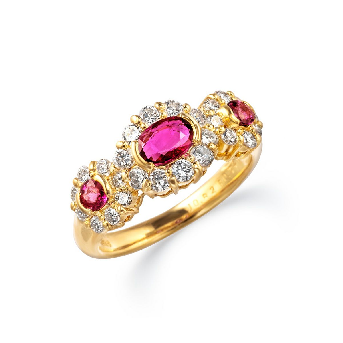 K18 ルビー スリーストーン リング