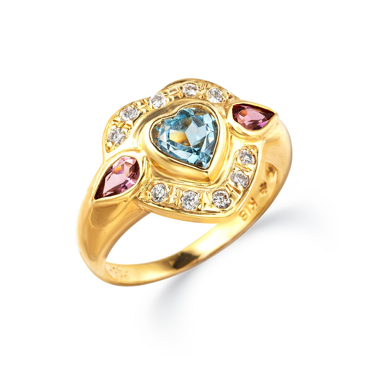 K18 ブルートパーズ ハート リング