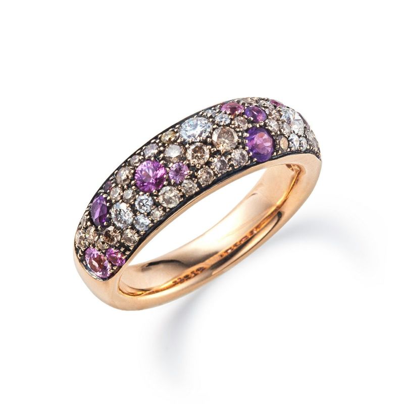 メインストーン:ダイヤモンド(ライトブラウン&カラーレス) サイドストーン:ピンク~パープル系ストーン