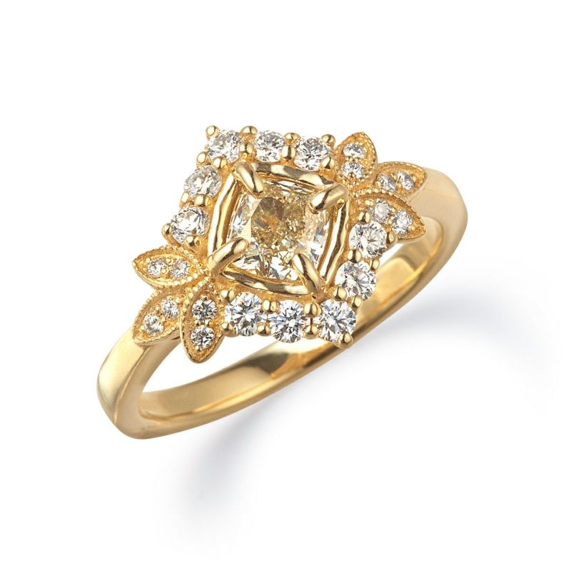 メインストーン:ダイヤモンド(クッションカット) サイドストーン:ダイヤモンド