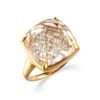 メインストーン:ロッククリスタル サイドストーン:ダイヤモンド(0.50ct) ※パヴェセッティングされたダイヤモンドの上にチェッカーボードカットのロッククリスタルを被せた構造