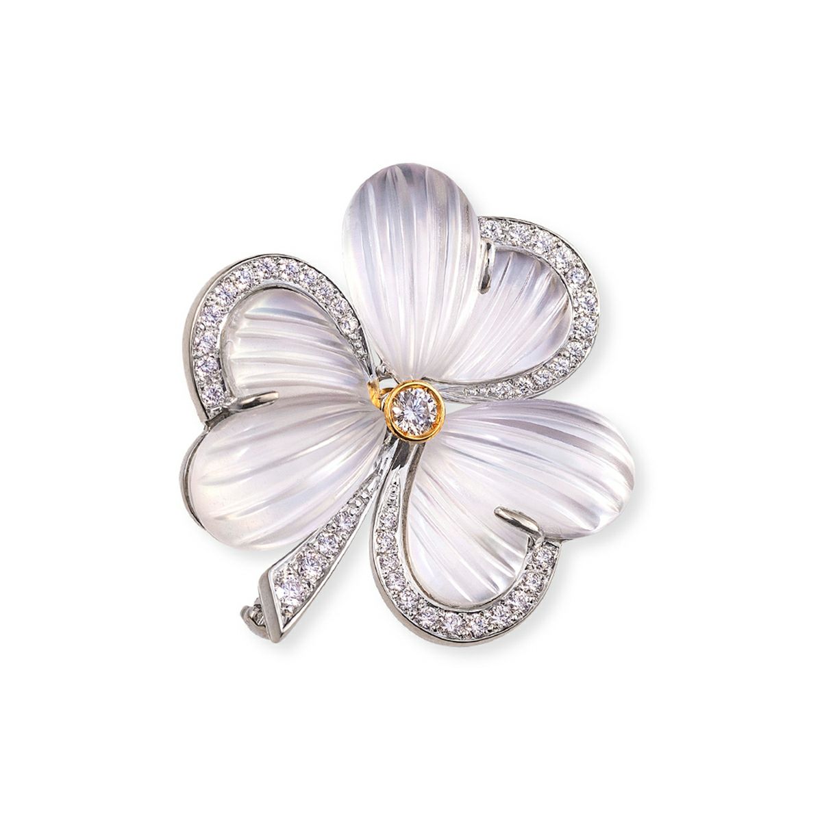 K18 ダイヤモンド マザーオブパール クローバー ブローチ ペンダントトップ