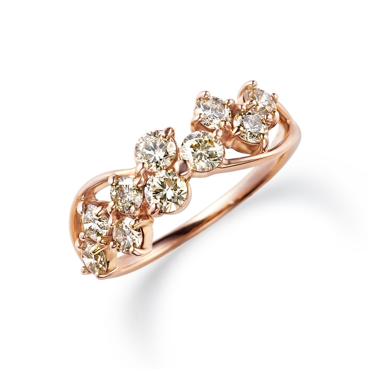 K18 ブラウン&ホワイト ダイヤモンド リング