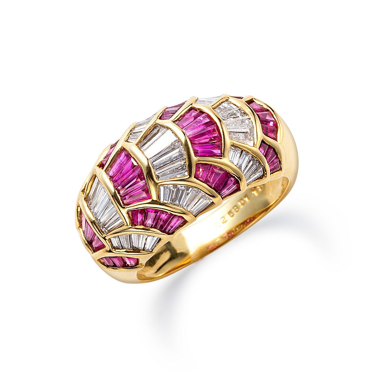 Pt/K18 ダイヤモンド ルビー フラワー リング