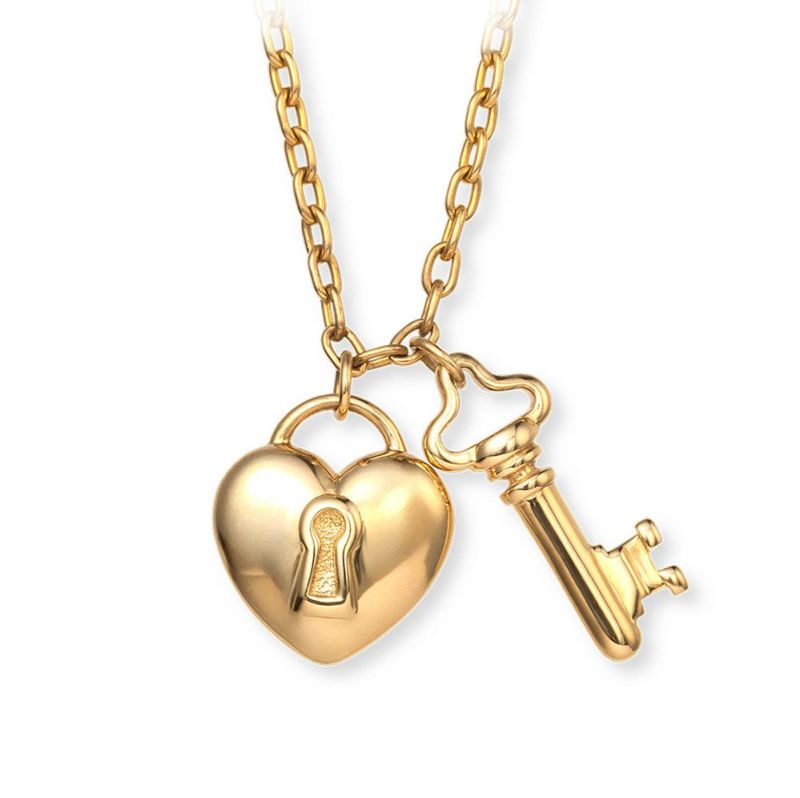 モチーフサイズ:縦 約14.0mm 横 約12.3mm(ハートロック)/縦 約18.2mm 横 約7.2mm(キー) ネックレス全長:約40.7cm