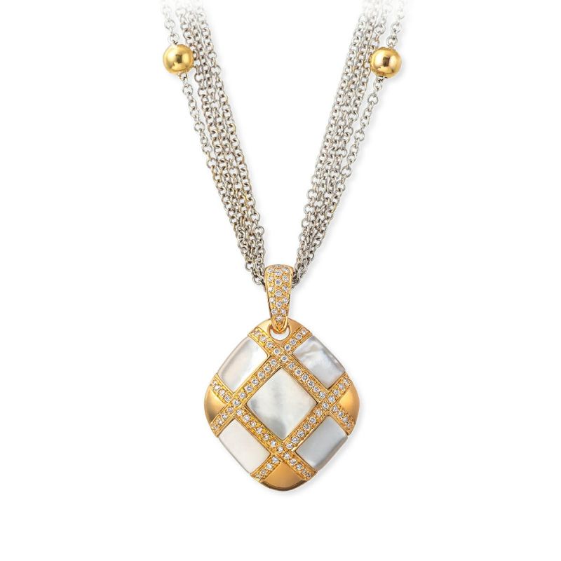 750ピンクゴールド(トップ部分)/750ホワイトゴールド(チェーン)/750イエローゴールド(チェーンの間のゴールド珠)