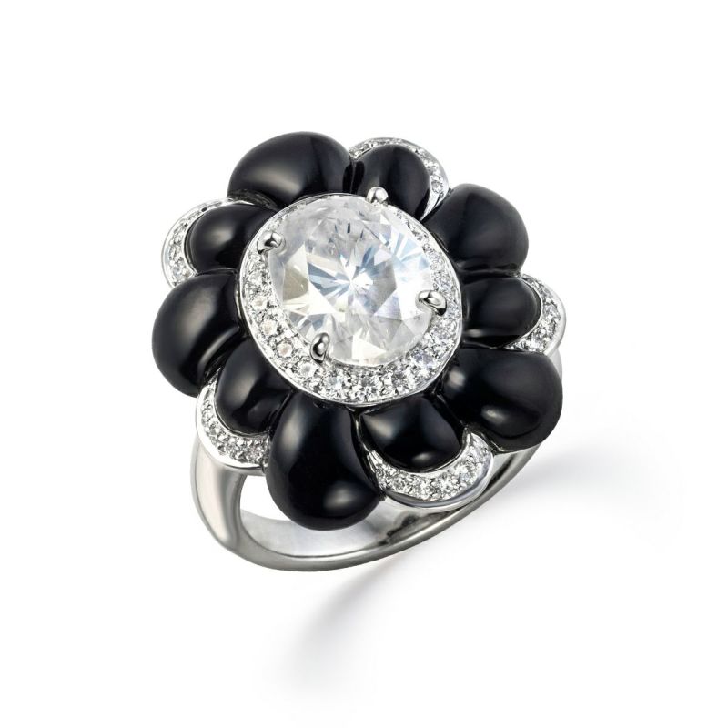 メインストーン:ダイヤモンド(3.068ct オーバルカット/ミルキーホワイトカラー) サイドストーン:ダイヤモンド(0.50ct)/オニキス