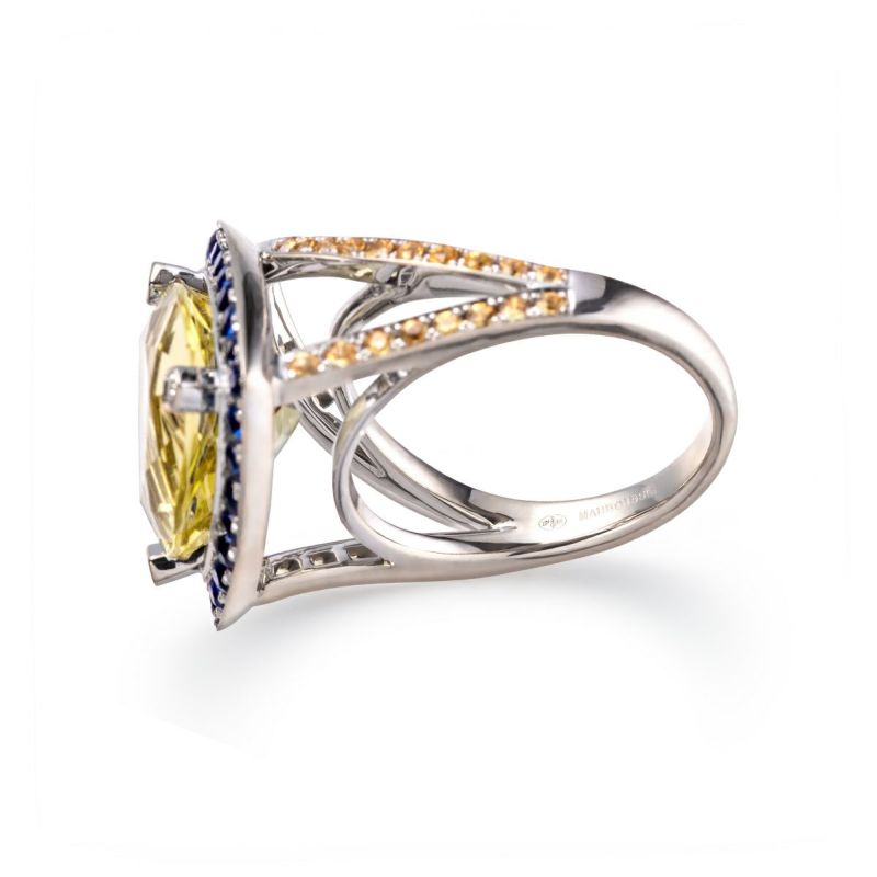 メインストーン:レモンクォーツ サイドストーン:ブルーサファイア/ダイヤモンド/黄色石