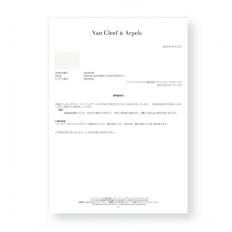 シリアルナンバー:JE434509 ※2024年10月発行のヴァンクリーフ&アーペルの修理証明書付
