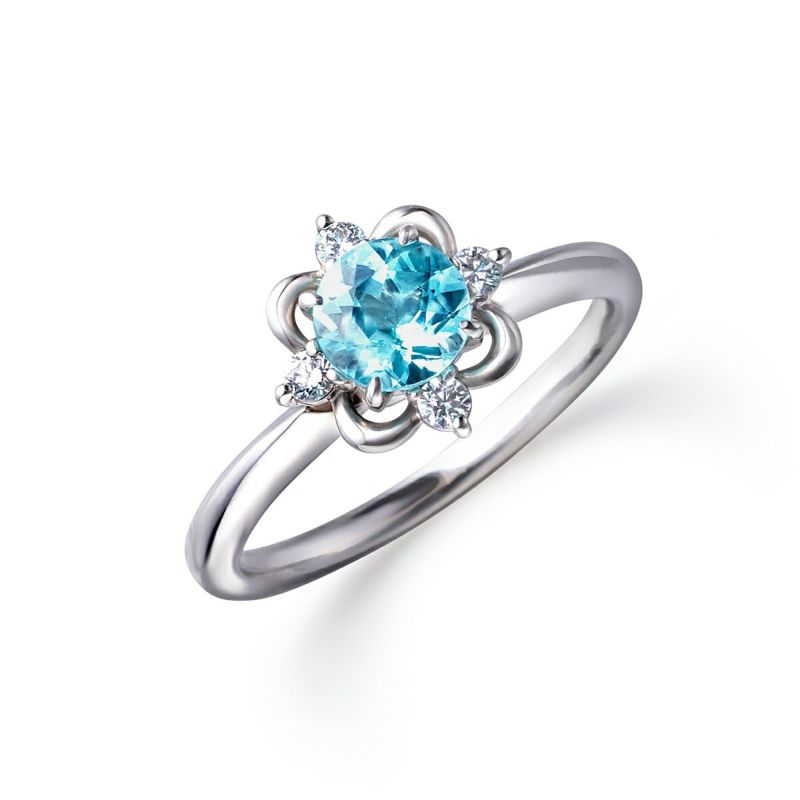 メインストーン:パライバトルマリン(0.620ct ラウンドカット) サイドストーン:ダイヤモンド(0.10ct)