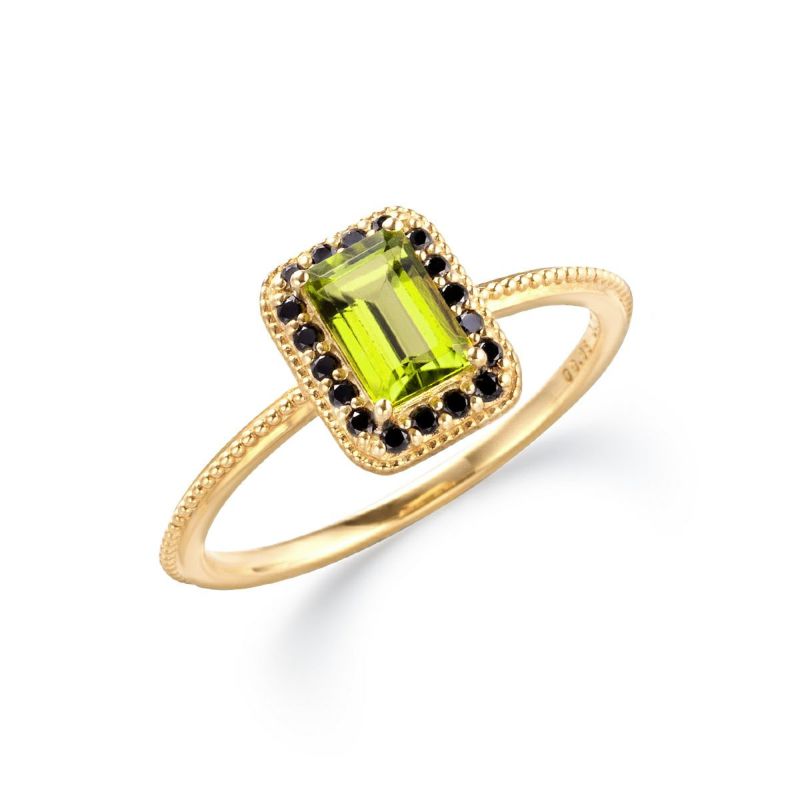 メインストーン:ペリドット(0.71ct エメラルドカット) サイドストーン:ブラックダイヤモンド(0.08ct)