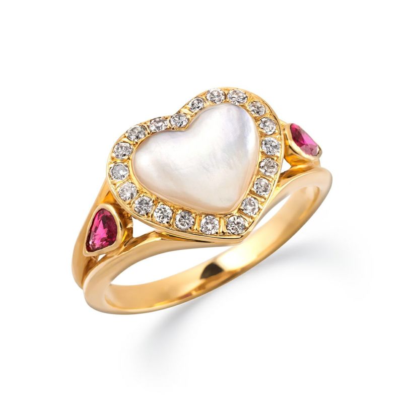 メインストーン:マザーオブパール サイドストーン:ダイヤモンド(0.22ct), 赤色石