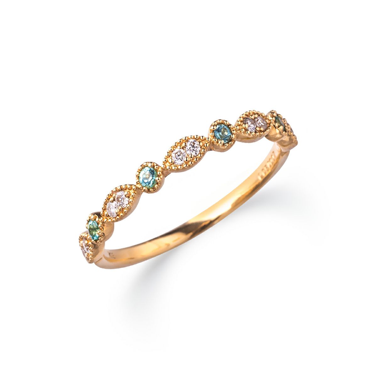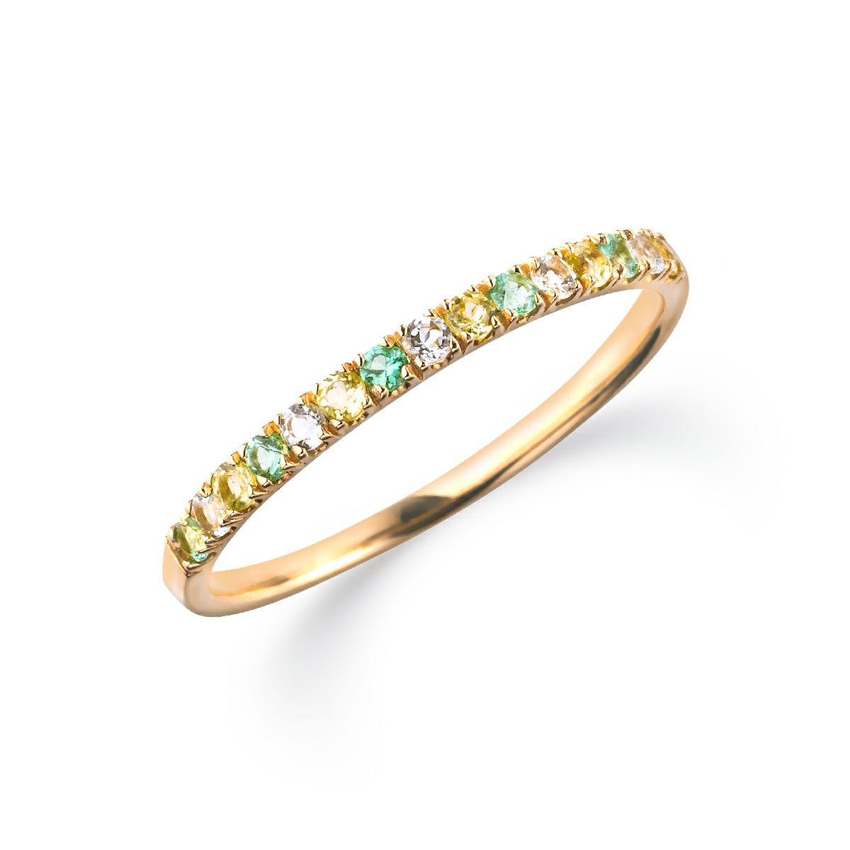 K10 グリーン系 ハーフ エタニティ リング〈エメラルド ペリドット アクアマリン〉