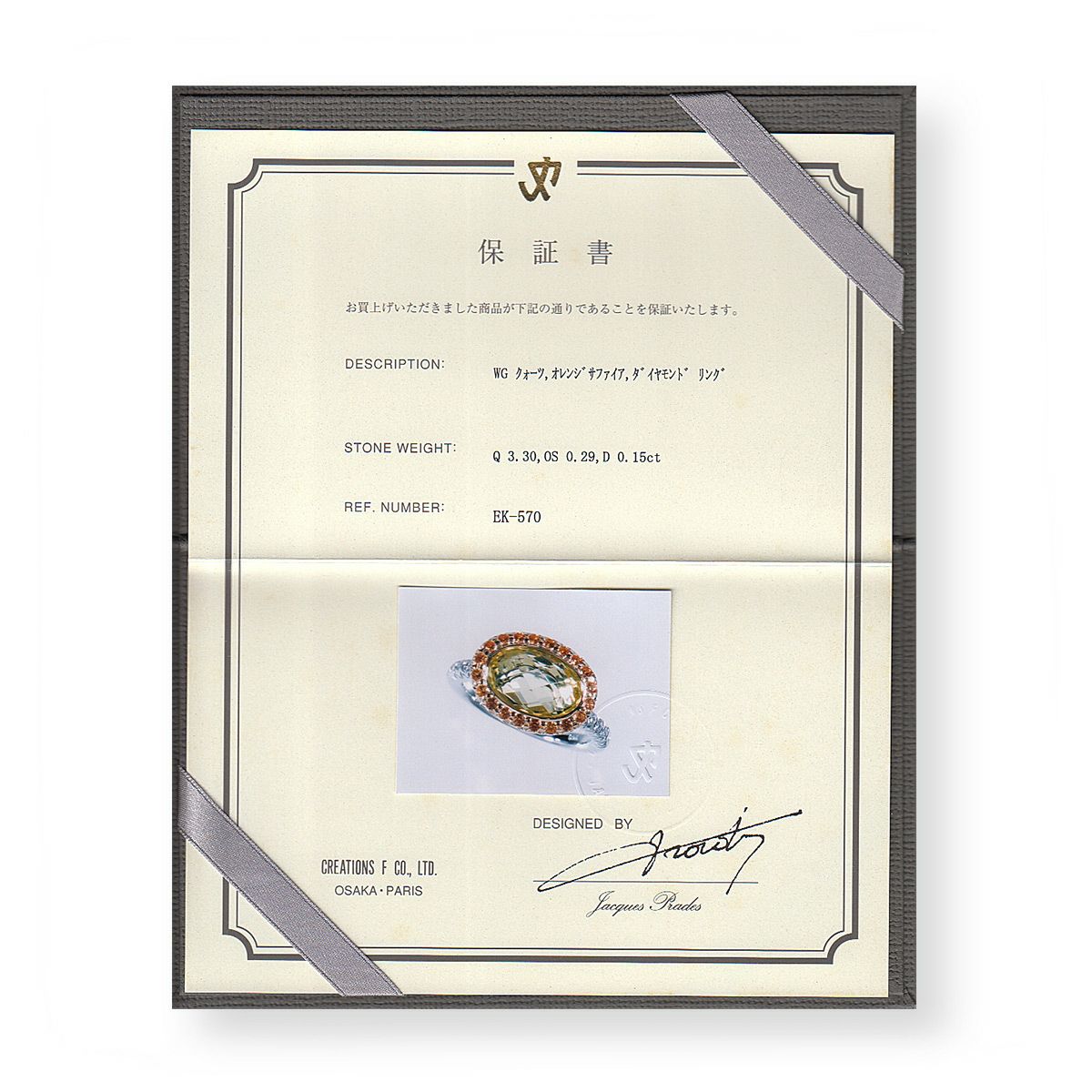 ジャック プラドゥ レモンクォーツ リング