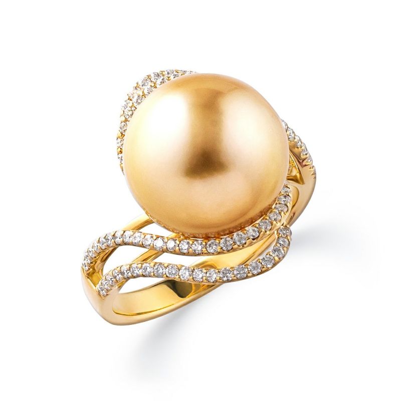 • メインストーン:白蝶真珠 「オーロラムーンレインボー」(ゴールド系/約12.8mm) サイドストーン:ダイヤモンド(0.48ct)
