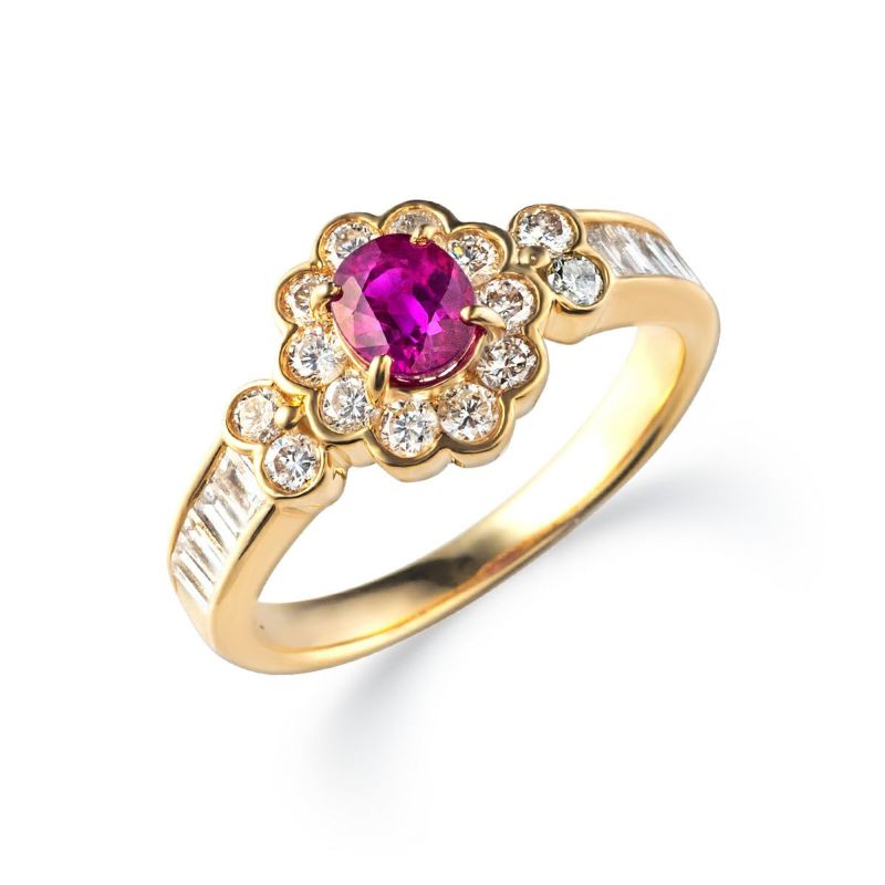 メインストーン:ルビー(0.68ct オーバルカット) サイドストーン:ダイヤモンド(0.70ct)