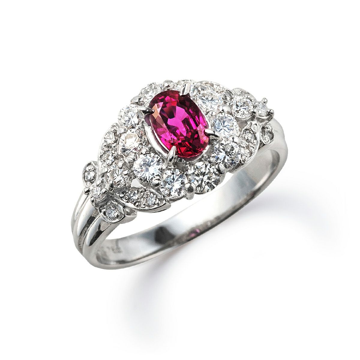 メインストーン:ルビー(0.790ct オーバルカット) サイドストーン:ダイヤモンド(0.780ct)