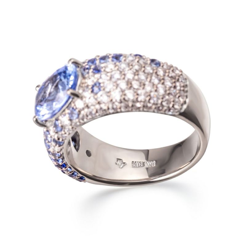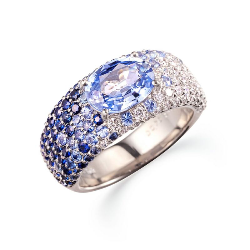 メインストーン:サファイア(2.27ct オーバルシェイプ) サイドストーン:サファイア(1.48ct), ダイヤモンド(0.76ct)