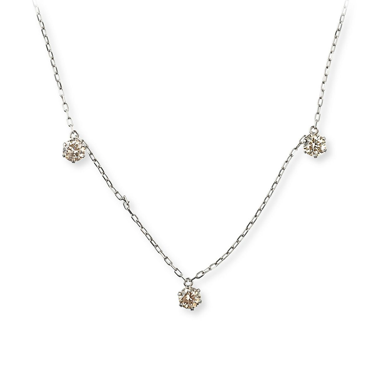 Pt ライトブラウンダイヤモンド ステーション ネックレス