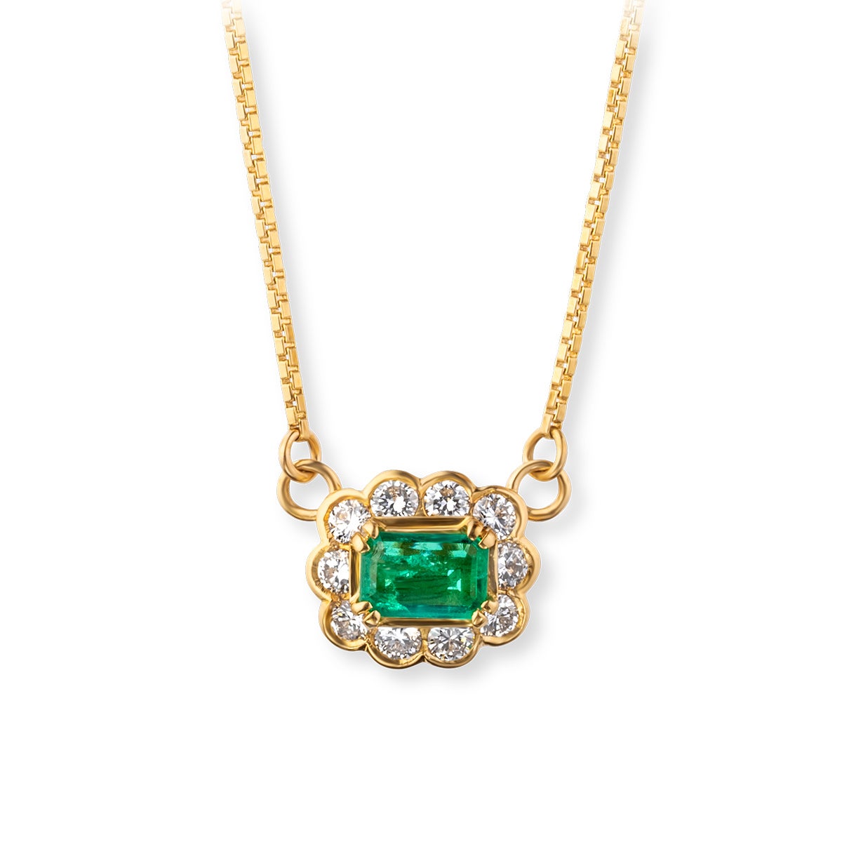 ヴィンテージ モーブッサン ダイヤモンド エメラルド フラワー リング