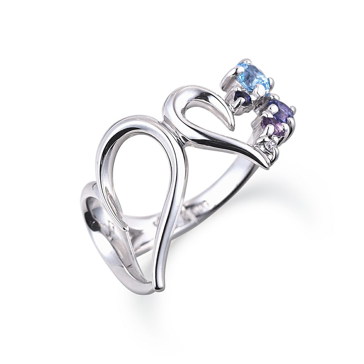 K18WG マルチストーン ピンキーリング